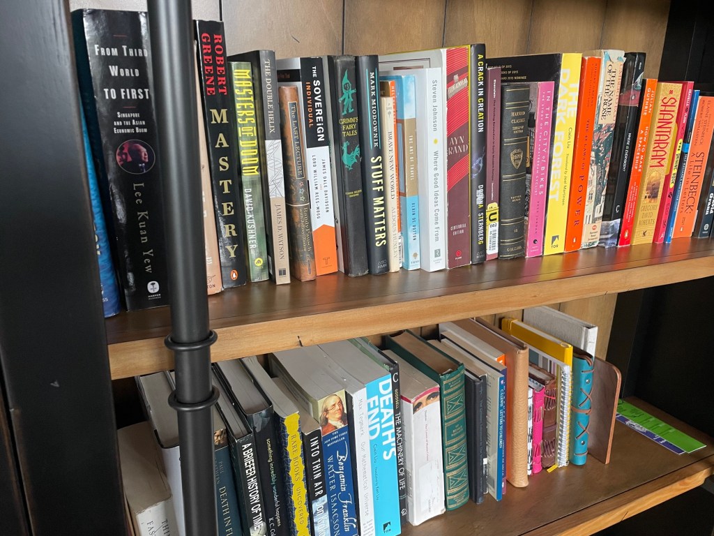 2. Nice bookshelf filled with books in my study: I have a wooden bookshelf in my study that I keep all my books on. I love this bookshelf! The craftsmanship that has gone into making this piece is evident. I find the bookshelf both beautiful and inspiring. Being able to see the books that I’ve read, and books that are waiting to be read, further helps create a more abundant environment for me.