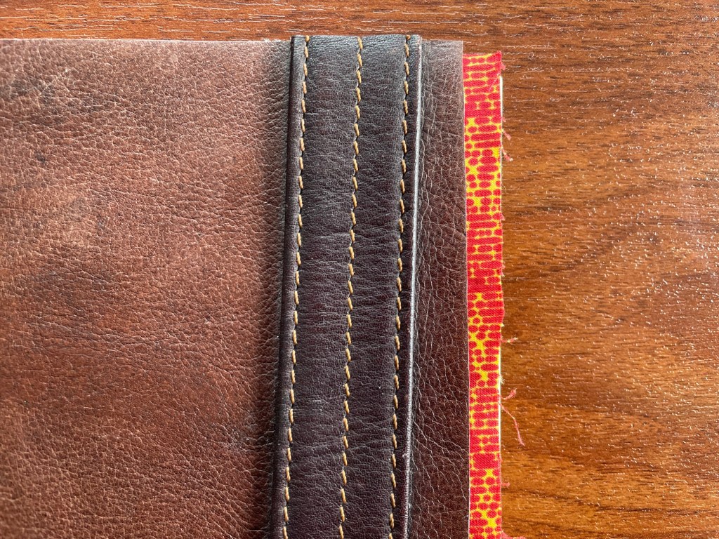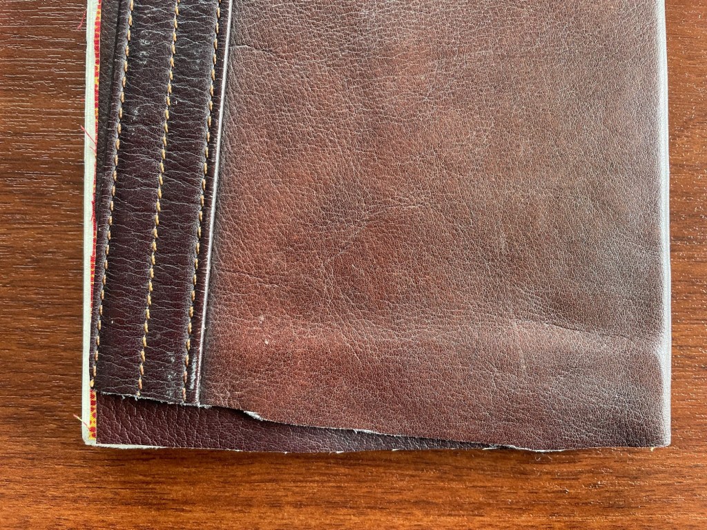 I had to apply another strip of leather to cover the exposed cover on the back, but of course it looks terrible.