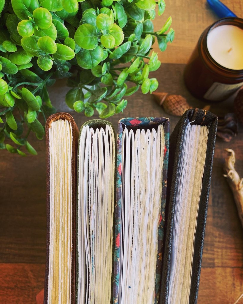 My recent interest in book binding has had a nice side effect – I’ve started journaling a lot more, since I enjoy writing in my own handmade books. It gives me great pleasure to write in my own handmade notebooks – I enjoy their texture, I take mental notes on what’s working and what’s not working about the diary – sometimes I write this down in the diary itself as reference notes for future projects :). And of course, I write any thoughts and musings that come to me.